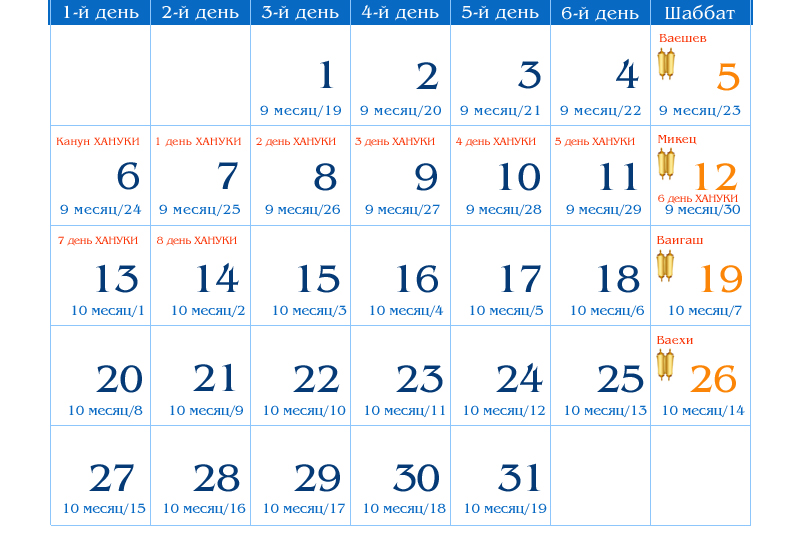 Ханука с вечера 6 на 7 декабря — 8 дней праздника.